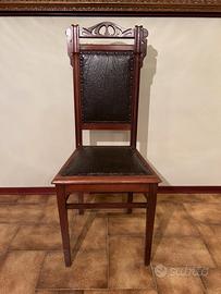 Vendo quattro sedie in stile antico con seduta e schienale ricoperti in pelle. Dimensioni 43Lx40Px106H cm.