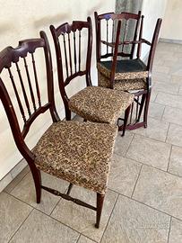 Quattro sedie liberty in ottimo stato, solide, ancora con rivestimento originale in ottimo stato, introvabili, perfette per qualunque arredamento, vendo anche coppia perfette per arredare un’entrata, presenti piccole tracce d’uso, il prezzo si riferisce a cadauna.