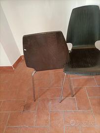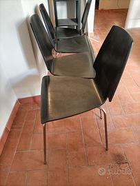 Quattro sedie nere in legno e gambe in acciaio buono stato. Non spedisco.