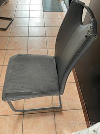 Vendo 4 sedie da soggiorno/cucina in ecopelle grigio. Le sedie sono perfette per seduta e struttura che è in metallo, ma l’ecopelle è consumata. Andrebbero rivestite con le foderine apposite che vendono anche al mercato e tornerebbero nuove.