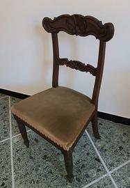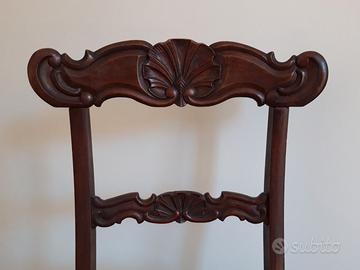 Quattro sedie intagliate a mano nel periodo umbertino (1870-1900), disponibili al ritiro di persona a Chiavari o invio previo accordo.