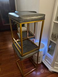 Vendo quattro sgabelli colore grigio in simil pelle, con finiture in oro, usati pochissimo come nuovi prezzo, affare ritiro a mano.