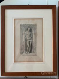 •San Sebastiano (incisione classica): il santo martire trafitto dalle frecce, con cornice in legno chiaro.