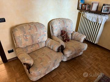 Salotto con armadio, tavolo tondo allungabile, divano, 2 poltrone e 6 sedie In legno massello Smontaggio e trasporto a carico di chi lo ritira.