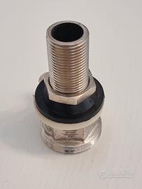 Vendo raccordo per impianto di spillatura birra, in metallo nichelato con filettatura esterna e uscita laterale per tubo gas/liquido.
