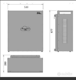 Scatola in lamiera di alluminio per il montaggio delle batterie Pylontech. Dimensioni (altezza x larghezza x lunghezza mm) 677x530x280.