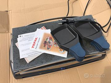 Vendo per inutilizzo Kit Raclette Tefal Pierrade Ambiance con 8 vassoi. Alimentazione elettrica con spina Schuko (tedesca) e interruttore di accensione.