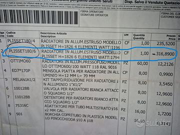 Modello Plisset, altezza 1826 modello OTTIMO600/100 WATT colore RAL9016. Il radiatore non è stato mai montato, ma solo aperto per controllarne l'interezza. Nella foto è visibile anche il prezzo di quanto è stato pagato. Ovviamente solo ritiro a mano.