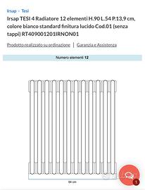 Vendo Radiatori Irsap TESI 4 colonne varie misure e dimensioni come da foto . Prezzo Radiatore 6 elementi : € 100 Prezzo Radiatore 7 elementi : € 120 Prezzo Radiatore 8 elementi : € 140 Prezzo Radiatore 10 elementi : € 180 Prezzo Radiatore 12 elementi : € 220 Trasporto a carico dell’acquirente