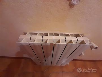 Radiatori riscaldamento in alluminio, ottime condizioni, si dispone di circa 60/66 elementi, assemblati in varie composizioni, ognuna completa di attacchi in entrata e uscita, si possono assemblare a piacere. Prezzo 6 euro per elemento, più termo convettore funzionante a 50 euro, prezzo totale 444 euro. scontato a 370 euro, SOLO RITIRO.