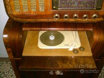Vendo come da titolo Radio Bacchini modello 316A Milano con frequenze di canali nazionali esteri, con giradischi con musica di 33, 45, e 78 un pezzo raro di antiquariato compreso di mobile tutto in legno di noce, vano Bar, anni '30-40 completamente restaurata e funzionante per amatori alla somma stimata di ?1000 non tratt.