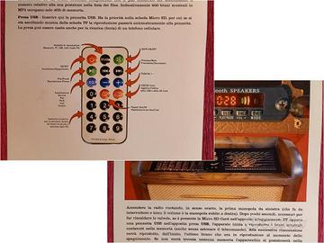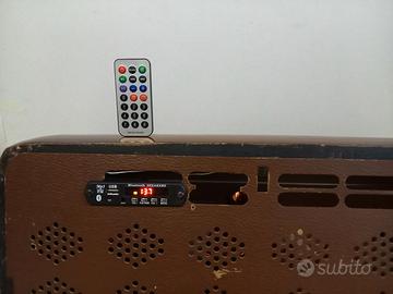 Rarissimo esemplare di una bellezza unica, introvabile in queste condizioni. E’ il modello SV87 costruito negli anni 40 dalla Magnadyne di Torino. E’ stata revisionata la parte elettrica e sono stati sostituiti tutti i componenti degradati. In origine riceveva le onde medie ma, dato che oggi non vi sono più trasmissioni AM, è stato modificato internamente per "tornare a parlare" come un tempo. All'accensione, trascorsi alcuni secondi necessari al riscaldamento dei filamenti delle valvole, si potrà tornare indietro nel tempo, udendo canzoni, discorsi e comunicati che quella radio realmente trasmise in quegli anni 40. I meno nostalgici potranno ascoltare anche le attuali trasmissioni in FM, le musiche inserite su una pennetta USB, o ciò che si vorrà inviare via telefono con il Bluetooth. La massima versatilità in un bel pezzo di storia e di arredo. Un piccolissimo comando a distanza senza filo consente la selezione, o la messa in pausa del brano da ascoltare. Nota importante: siccome il modulo si trova nella parte posteriore della radio (come visibile in foto due) indirizzare il telecomando tra il muro (o la parte in legno del mobile che ospita la radio) e la parte posteriore dell’apparecchio in cui è montato il modulo in modo tale che gli infrarossi raggiungano di rimbalzo il modulo stesso. Ma, anche nel caso in cui non si volesse utilizzare il telecomando, all’accensione della radio verranno comunque riprodotti in automatico e in modo sequenziale i brani che si trovano sulla memory-card, senza fare nulla. Data la fragilità del pezzo è preferibile il ritiro a mano ma, in caso di spedizione, per ridurre al minimo le possibilità di danneggiamenti causati dal viaggio, il corriere lo posizionerà su pedana che impedirà anche il rovesciamento. Ricordo che il venditore non sarà responsabile per eventuali danni subiti dall’apparato durante il viaggio. Per ulteriori informazioni o per richiedere un video prima dell’acquisto, chiamare il 3487146039. Vendita tra privati