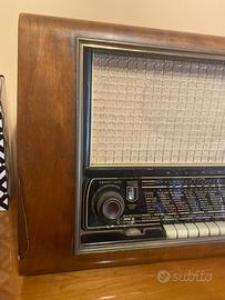 Radio d’epoca Blaupunkt Riviera 3D, originale anni 50/60. Mobile in legno ben conservato con frontale con tessuto originale. Modello valvolare. Funzionante.