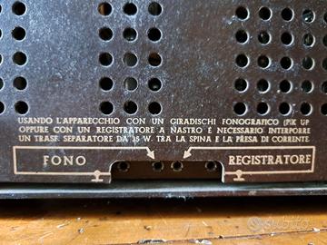 Radio perfettamente funzionante Mivar Rodi del 1958 - 1960 compatta da tavolo in materiale plastico . La scala parlante riporta l’indicazione delle lunghezze d’onda , delle località, frequenze e canali su vetro, supportata dall’indicatore scorrevole attivato dalla manopola di sintonia a destra. l’altra manopola a sinistra permette l’accensione, lo spegnimento e la regolazione del volume . In basso sono presenti 7 pulsanti per la commutazione di gamma d’onda e accessori esterni (jazz, orch, voce, fono, MF, OM, OC). Il retro è coperto da un pannello in cartone parzialmente forato con l’indicazione delle prese antenna e accessori.