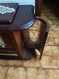 Radio Mobile antico in legno con valvole e giradischi