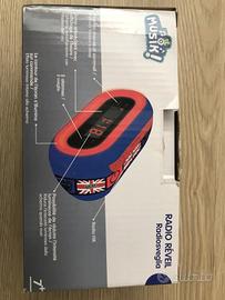 Vendo come nuova causa inutilizzo radiosveglia rossa e blu con bandiera inglese con schermo retroilluminato con display dell'ora, con possibilità di ridurre luminosità dello schermo, 2 sveglie, radio Fm. Funziona con elettrico o pile