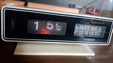 Radiosveglia orologio a cartellini Flip Clock vintage, Germanvox anni '70 AM/FM con luce notturna, perfettamente funzionante e in ottime condizioni.
