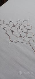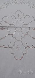 Raffinatissimo copriletto bianco di SFILATO SICILIANO adatto anche come telo tenda ricamato al centro e per tutto il perimetro Molto particolare Misure 2.70 per 2.35