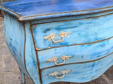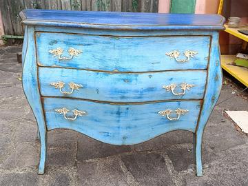 Raffinato comò interamente rivisto in patina con invecchiamento ricercato. Possibilità di consegna inclusa nel prezzo adeguato alla qualità verificabile del prodotto proposto
