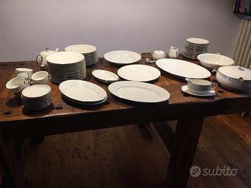Elegante e raffinato servizio piatti realizzzato negli anni 30 dalla manifattura Thomas Ivory del gruppo Rosenthal. Il servizio, in edizione limitata e numerato, è in porcellana color avorio con bordatura in oro bianco