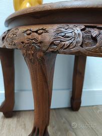 Raffinato Tavolino Cinese Vintage in Legno di Olmo Intagliato