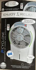 Raffrescatore evaporativo con funzione ionizzante per rinfrascare ambiente interno ( una stanza) con diffusore rotante