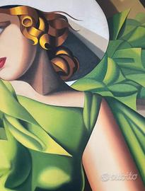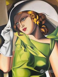 Falso d’autore Ragazza in verde Tamara della Lempicka Dipinto su tela Tela 50x70 più 10 cm di cornice NON SPEDISCO!!