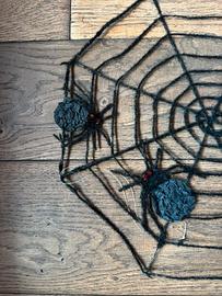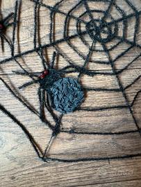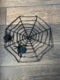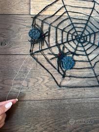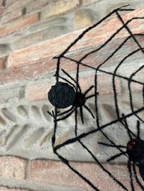 Ragnatela decorativa per feste di Halloween o altre feste a tema. Riprende la trama di una vera ragnatela ed ha due ragni finti cuciti sopra. È realizzata in un materiale realistico che le conferisce un aspetto spettrale. Ha un comodo filo per appenderla. Ideale per feste a tema o scherzi! Utilizzata una sola volta per l'allestimento della vetrina di un negozio.