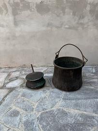Condizioni come da fotografie. Oggetti e pentole varie, principalmente in rame. Qualcosa anche in ferro. Vendo in blocco. Peso totale: circa 20kg Vendo al kg (da pesare al momento). Proporre prezzo al kg. Ritiro solamente a mano a Desio (Monza & Brianza).