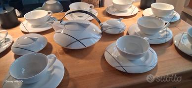 Vendesi servizio da tè Gallery Collection anni Settanta prodotto da Ranmaru UFO Japan, in ceramica bianca con striature grigie e nere. Il set comprende 10 tazze e piattini, teiera, lattiera, zuccheriera. Servizio in condizioni perfette, molto raro, firmato da Angelo Welzi. Il design è un omaggio alla space age, da notare infatti la forma straordinaria dei componenti :)🛸👩🏻🚀 ritiro gratuito zona Peccioli (PI) o spedizione.