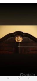 REGALO Rara Cassaforte a Mobile F. Wertheim & Co. – Vienna, XIX Secolo DESCRIZIONE:Incredibile esemplare di ingegneria e design austriaco dell’Ottocento. Questa sontuosa cassaforte a doppio sportello, prodotta dalla celebreF. Wertheim & Co. di Vienna, rappresenta l’eccellenza della sicurezza d’epoca unita all’eleganza dell’arredo d’alto antiquariato. Il mobile è stato sapientemente realizzato per mimetizzarsi in uno studio o in una camera signorile: l'esterno presenta una raffinatalaccatura ad imitazione delle venature del legno, che le conferisce il calore di un armadio di pregio pur celando una struttura impenetrabile. CARATTERISTICHE PRINCIPALI: Origine:Austria, Vienna (Marchio originale sulla cimasa e all'interno). Epoca:XIX secolo (pieno periodo austro-ungarico). Design:Struttura imponente con cimasa superiore centinata e trilobata, decorata con stemma centrale dorato. Meccanica e Sicurezza:Doppia anta con complesso sistema di chiusura a leve. L'interno conserva l'etichetta originale cromolitografata, che attesta i numerosi premi vinti dall'azienda alle esposizioni universali (Parigi, Vienna, Costantinopoli). Condizioni:Ottimo stato di conservazione. Il mobile ècompleto delle sue chiavi originaliperfettamente funzionanti. DETTAGLI TECNICI: Dimensioni:Altezza 192 cm | Larghezza 113 cm | Profondità 72 cm. Finitura:Laccatura effetto radica/legno originale. NOTE STORICHE:La ditta Franz Wertheim, fondata a Vienna nel 1852, era nota come la "cassaforte dei re". I suoi prodotti erano famosi per la resistenza al fuoco e ai tentativi di scasso, testati pubblicamente davanti a folle entusiaste. Possedere oggi un pezzo Wertheim significa possedere un frammento di storia industriale europea. ATTENZIONE: molto pesante, necessario ritiro con mezzi idonei a cura e spese dell'acquirente.