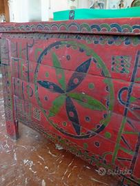 Lido di Camaiore - Vendo rara Cassapanca cassone nuziale, originale d'epoca Sano e robusto, conservato in ottime condizioni originali, in relazione alla vetustà, in legno massello, interamente laccato in policromia, con decorazioni incise a mano direttamente sul legno. Ampio vano contenitore interno, Possibilità, sul fronte, di chiusura con lucchetto. Misura cm 186x62x70 (esterno).