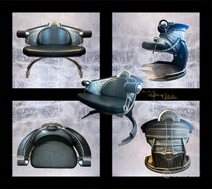 Ogni poltrona è realizzata con metallo di grado aeronautico, dettagliata con corde intrecciate e rivestita in ecopelle, come richiesto dal committente statunitense dell’epoca.