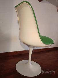 Rara coppia sedie Tulip knoll Designer Eero Saarinen anni '70 Schienale rivestito in tessuto verde, base in fusione di alluminio; Larghezza: 49 cm Altezza: 81 cm Profondità: 53 cm No spedizione ritiro in loco