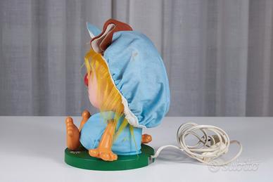 Completa della sua lampadina originale, funziona perfettamente. Da segnalare, come visibile in foto, una piccola macchia sul cappello del leoncino, un dettaglio minore che non intacca il fascino generale del pezzo.