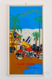 Trittico rarissimo composto da tre serigrafafie artigianali su vetro a stampa inversa, proposto esclusivamente come set completo. Un’opera di forte impatto visivo che unisce estetica pop-moderna e immaginario rétro, profondamente radicata nella cultura visiva della fine degli anni ’70 e ’80 in america e nella West Coast.