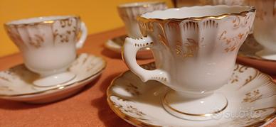 N°5 pezzi di RARE vintage tazze da caffè con relativo piattino in porcellana bianco latte Richard Ginori. Il decoro è arricchito con rilievo e rifinito a mano con oro vecchio, degli anni 60.