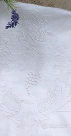Porta l'eleganza senza tempo e la maestria artigianale degli anni '50 nella tua camera da letto. Splendida parure da letto matrimoniale in puro cotone, un vero gioiello del corredo di una volta.
