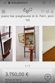 Per veri intenditori e amanti del modernariato, vendo rarissimo mobile bar pensile originale degli anni '50, con marchio "Brevettato A. Ferri".