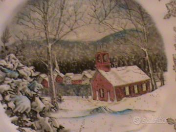Piatto britannico splendidamente decorato, sfondo del panorama invernale THE FRIENDLY VILLAGE.