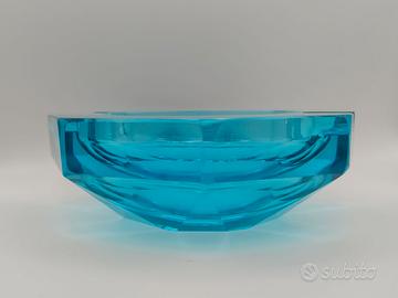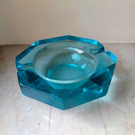 Spettacolare posacenere in vetro di Murano blu turchese degli anni '70. Il pezzo ottagonale ha quattro depressioni per sigaro o sigaretta. La larghezza e profondità é di 14,5 cm ed è alto. In ottime condizioni vintage come da foto, presenta alcuni segni sul fondo e leggeri segni di uso. Un pezzo veramente originale nella forma e con un colore veramente di effetto
