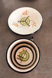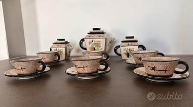 Splendido ed esclusivo servizio da caffè (o tè piccolo) in ceramica policroma, autentico esempio di design Futurista e Art Déco italiano della prima metà del XX secolo.