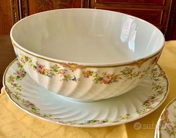 Raro e preziosissimo servizio di piatti LIMOGES COULEUVRE, (fondata nel 1789) edizione d'Arte limitata, facente parte di una produzione di altissima ed esclusiva qualità. In finissima porcellana bianca con delicato decoro floreale dipinto a mano.