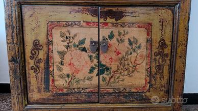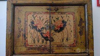 Proponiamo in vendita un eccezionale pezzo d'arredamento orientale della prima metà del XX secolo (stimato anni '20 - '40). Non si tratta di una riproduzione moderna, ma di un pezzo d'importazione pregiata acquistato presso la storica ed esclusiva Galleria Ottino di Genova. Il mobile è un esempio perfetto di artigianalità d'altri tempi, caratterizzato da dettagli costruttivi che ne testimoniano l'autenticità: Laccatura e Decorazione: Interamente dipinto a mano con motivi floreali (Loto e Peonie). La superficie presenta una splendida "craquelure" naturale (micro-crepe della lacca) e un'usura nei punti di contatto che conferisce al pezzo una patina inimitabile. Materiali Nobili: Realizzato in legno massiccio con venature vive visibili all'interno; ferramenta originale con le tipiche maniglie a "goccia" in metallo brunito. Stato di Conservazione: Strutturalmente perfetto. Nessun cedimento o difetto funzionale. Le 4 ante e i 2 cassetti centrali scorrono e si chiudono con precisione. Dimensioni: Larghezza: 82 cm Profondità: 40 cm Altezza: 130 cm Note per l'acquirente: Il valore dell'oggetto (2.000€) e la sua natura delicata richiedono la massima trasparenza. Invitiamo gli interessati a una visione di persona a Genova. La spedizione è possibile tramite corriere specializzato (a carico dell'acquirente), ma verrà concordata solo dopo che l'acquirente (o un suo delegato) avrà visionato il mobile dal vivo per confermarne lo stato e la bellezza. Per informazioni aggiuntive scrivetemi un messaggio privato qui su Subito.it. #antiquariato #orientalantique #ottino #genova #vintage #chinoiserie #legnomassiccio #lacca #pezzoúnico #interiordesign