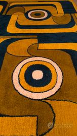 Disegnato dal famoso designer Fekete Ferenc e prodotto da Latex Studio negli anni '70, questo tappeto eccezionale affascina con la sua rara palette di colori e i suoi sorprendenti motivi geometrici. Un modello simile è esposto al Museo di Arti Applicate di Budapest, a testimonianza del suo significato artistico e storico.