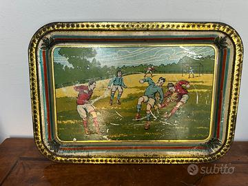 RARO VASSOIO VINTAGE IN LATTA - SCENA CALCIO ANNI '30