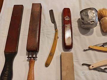 Vendo come da foto ki rasoi da Barbiere anni 50 60 in ottime condizioni la pietra e nuova. No perditempo Spedizione a carico