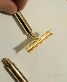 Elegante Rasoio di sicurezza, placcatura in oro 24 K, nel suo astuccio..