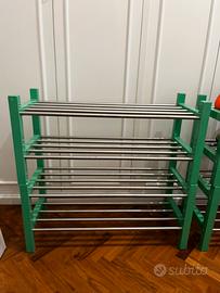 VENDO RASTRELLIERE IKEA MODELLO TJUSIG 79x32x37 CM SONO STATE RIVERNICIATE IN VERDE LUCIDO O DI BIANCO MATT. LA VERNICIATURA NON È PERFETTA, POSSONO ESSERE RIVERNICIATE A PIACERE. PER IL RESTO SONO TOTALMENTE FUNZIONANTI NON PARTI DANNEGGIATE.