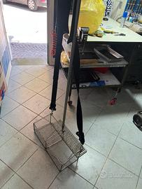 Rastrello in acciaio inox con rete zincata, larghezza 52cm , profondità 22cm, altezza della bocca di ingresso 15cm paletto alto 1,10mt. Il rastrello è nuovo ed è stato costruito con saldatura in acciaio inox.